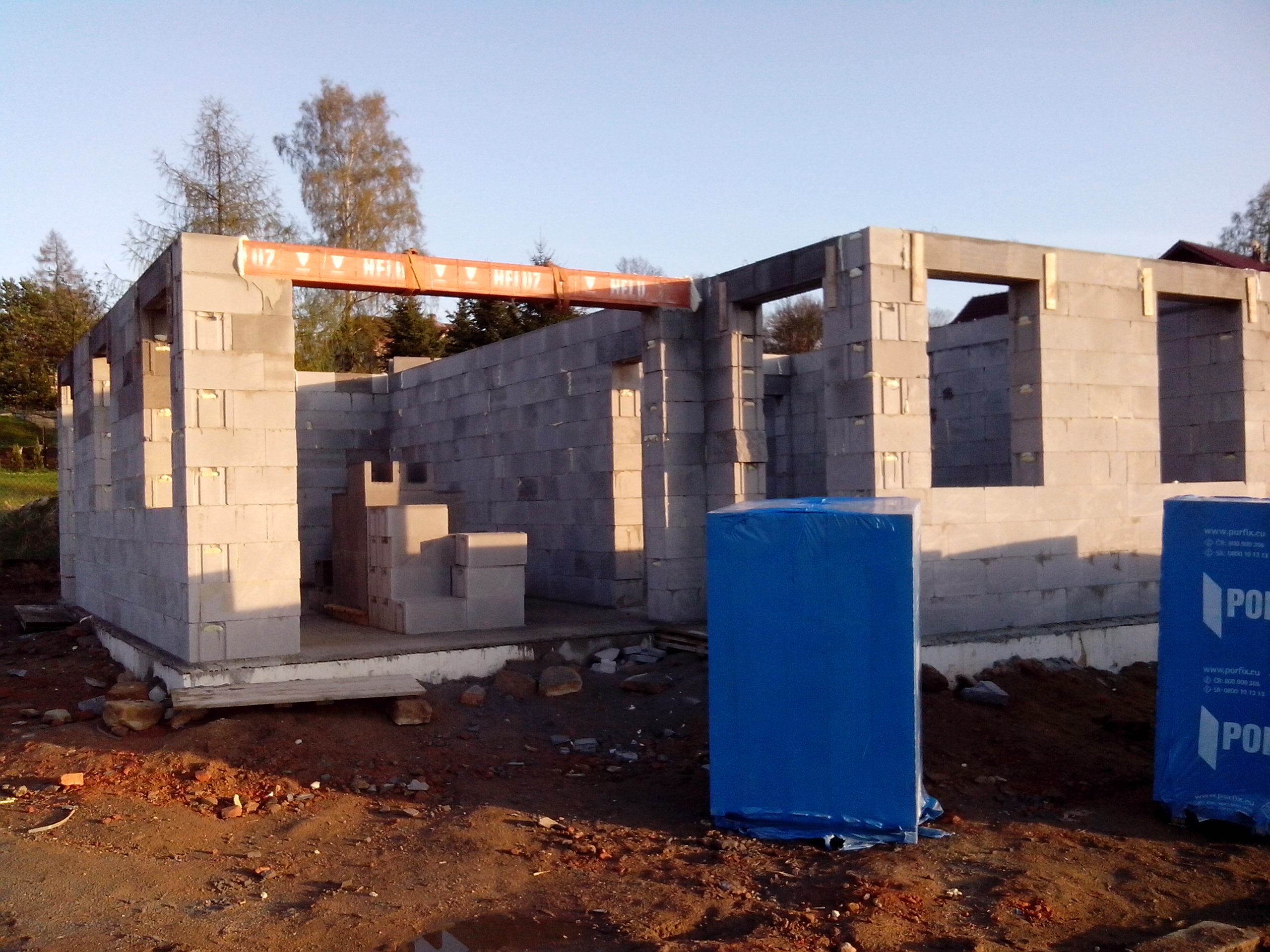 Na obvodové zdi jsou věncové U-profily na vnitřní se udělalo bednění.